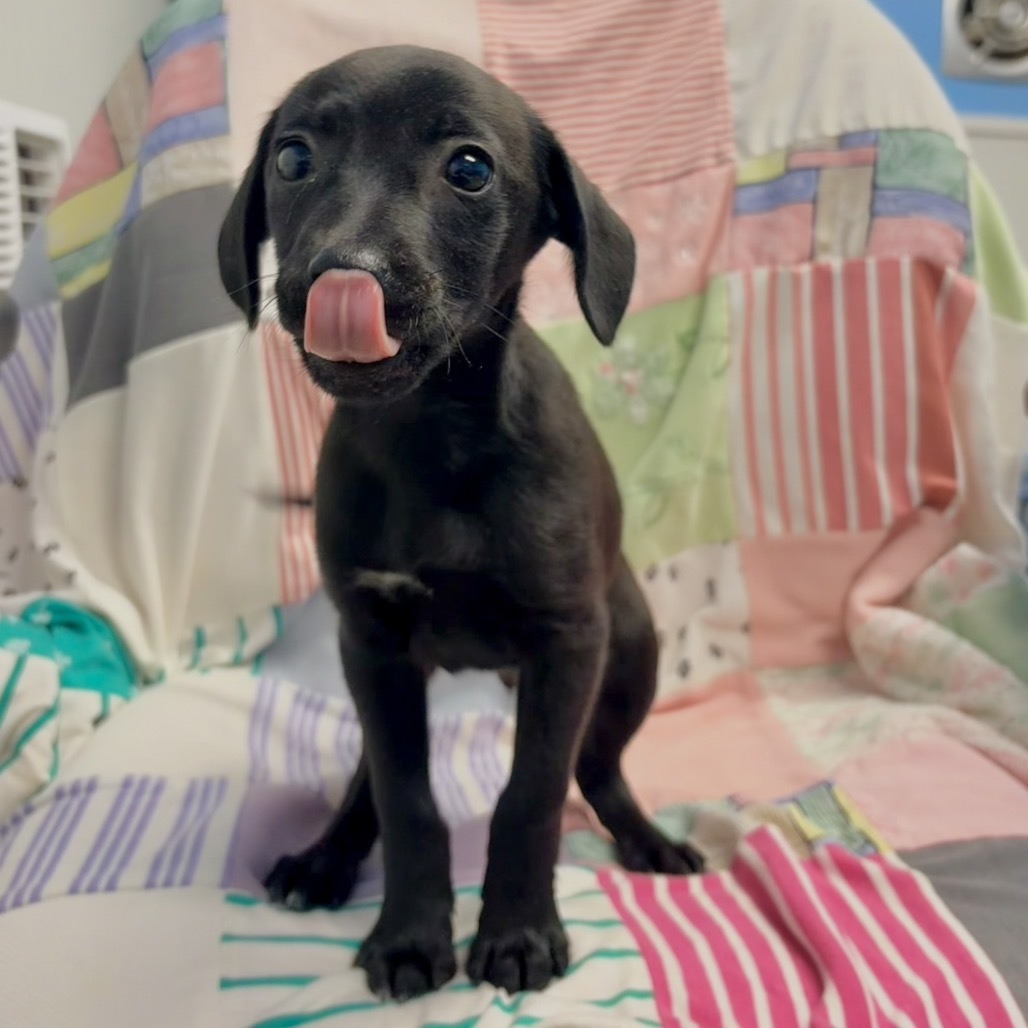 Greens is a black-coated 2-month-old Rat Terrier mix with an adorable personality and a love for fun! She's playful,...
